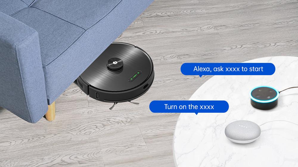 The sound of your voice will be a clever choice when you control with Google Assistant or Alexa, say like “Alexa, ask the smart bot to start cleaning.”