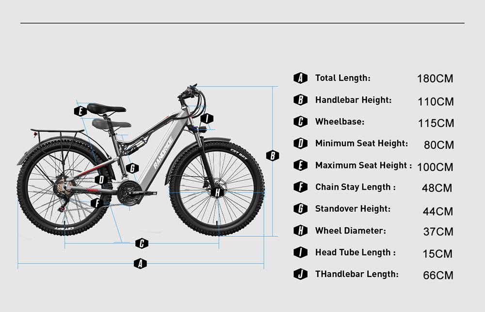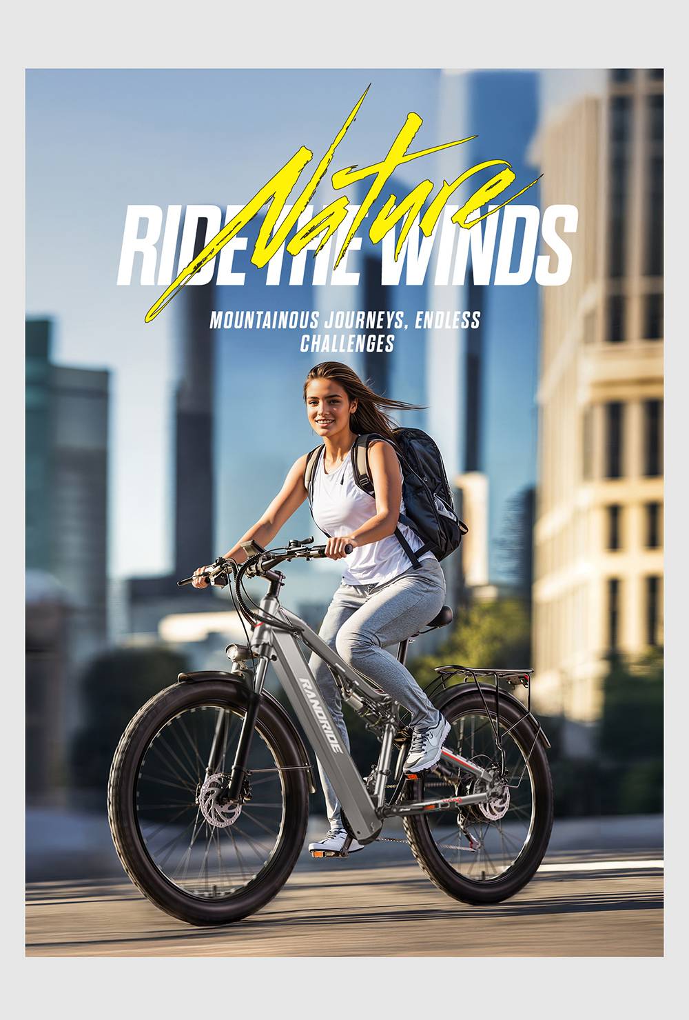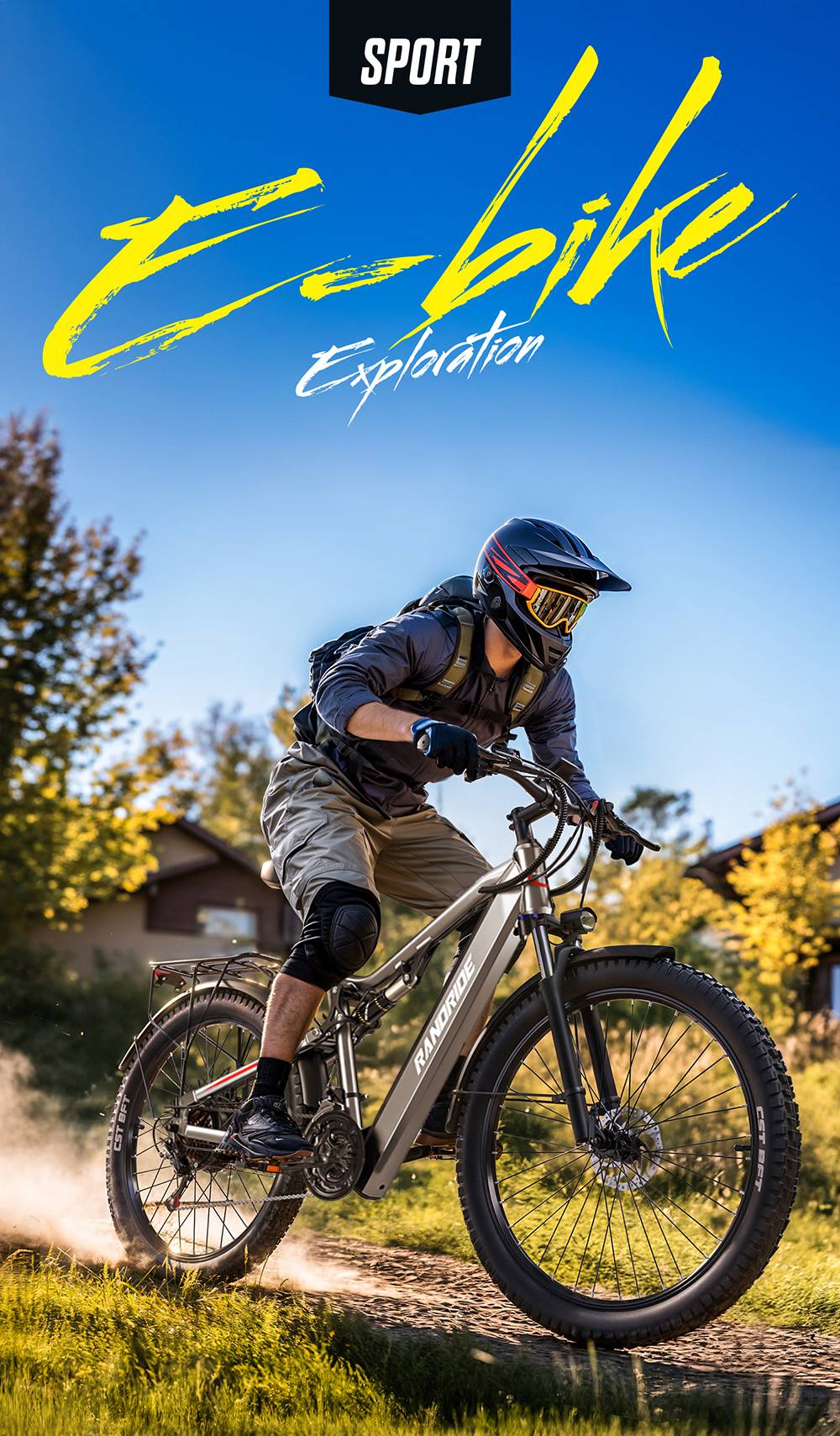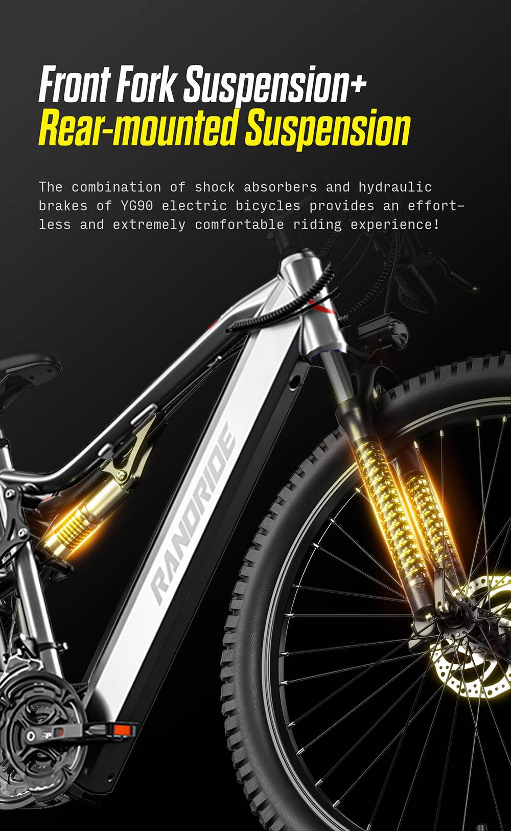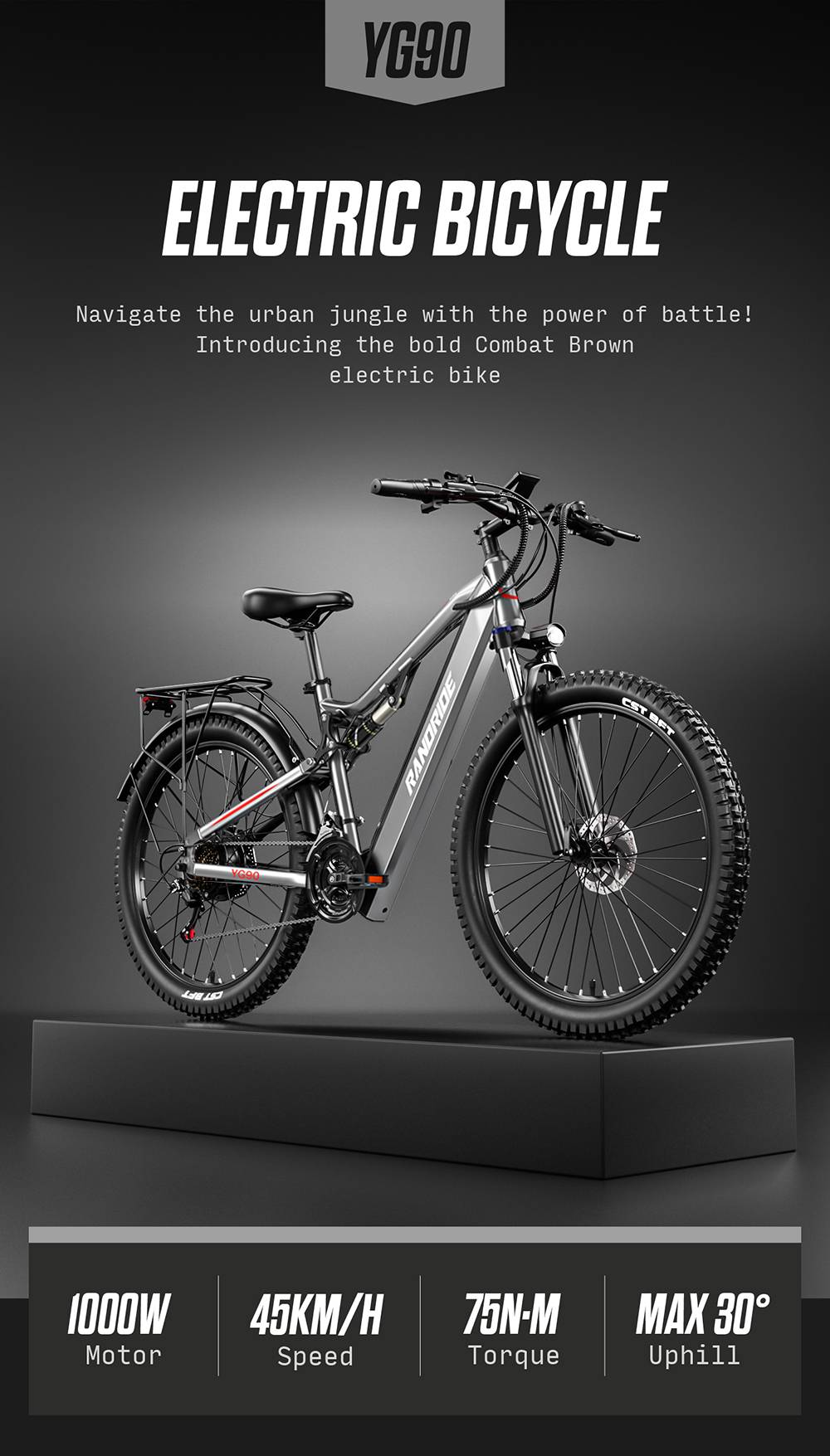 RANDRIDE YG90A Grey 48V 17AH 1000W 27.5*2.4 Inch Electric Bicycle 120KM Mileage Range Max Load 120KG
