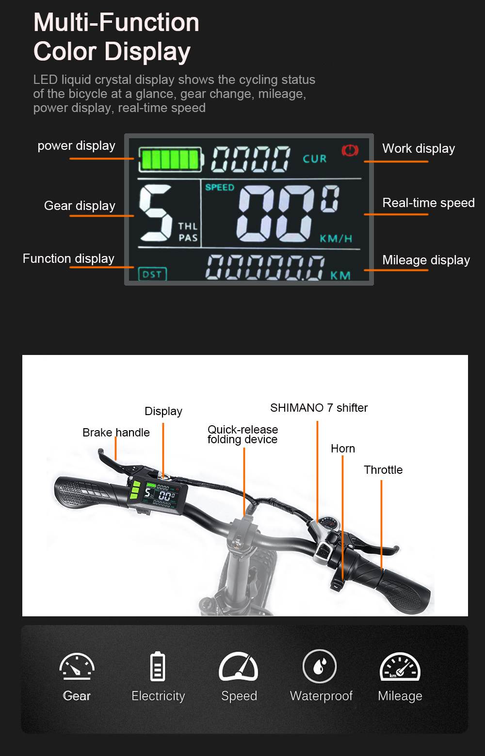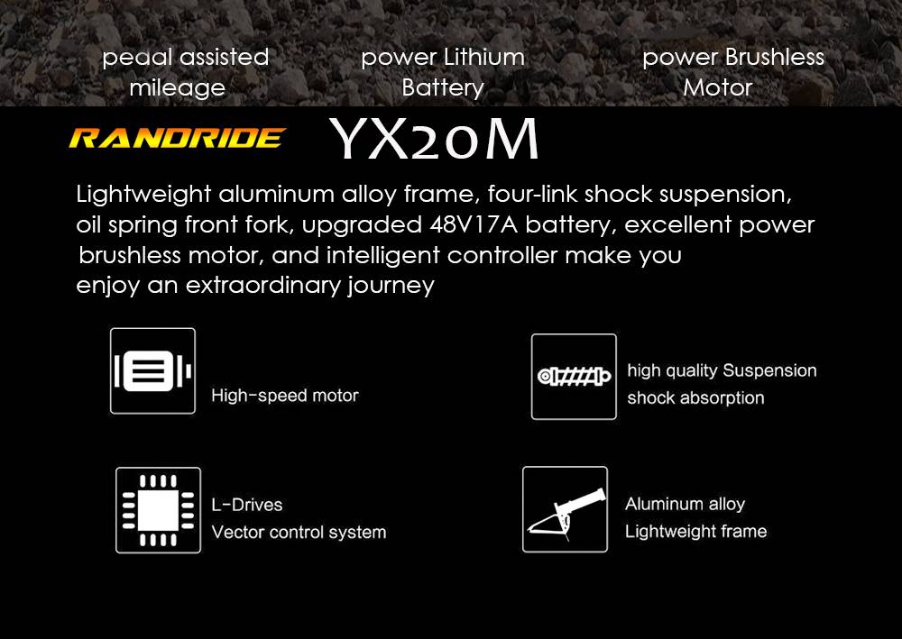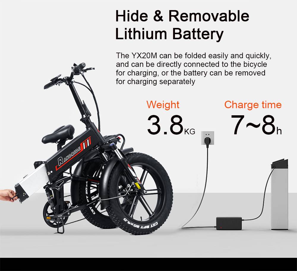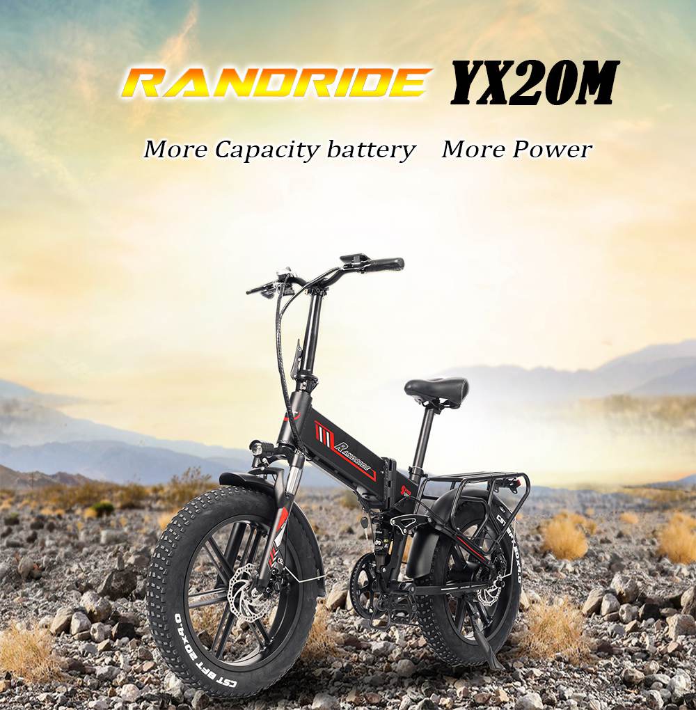 RANDRIDE YX20M Electric Bike 1000W Motor 20*4.0'' Fat Tires E-Bike 45km/h Max Speed 48V 17Ah Battery 80-90km Max Range 150kgLoad