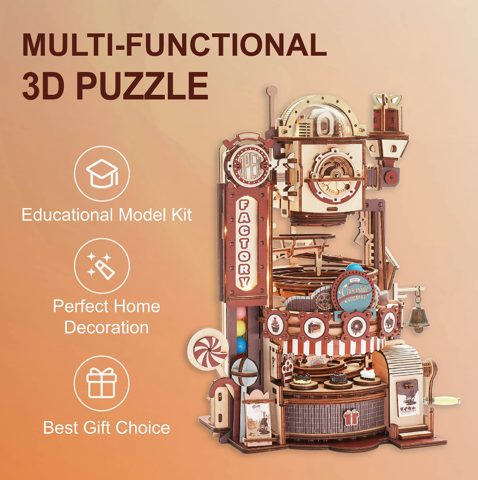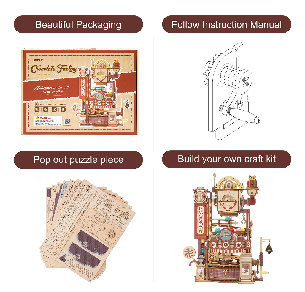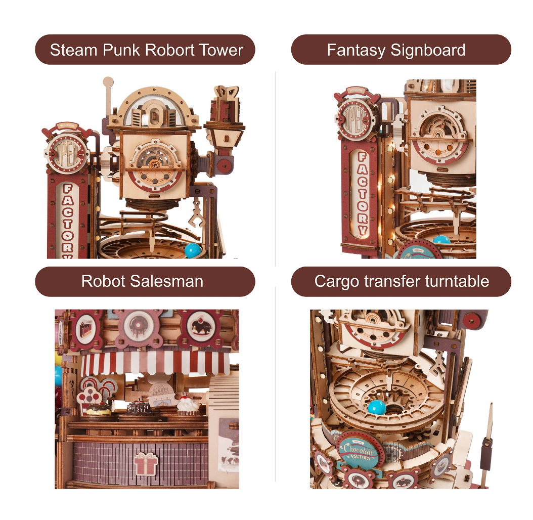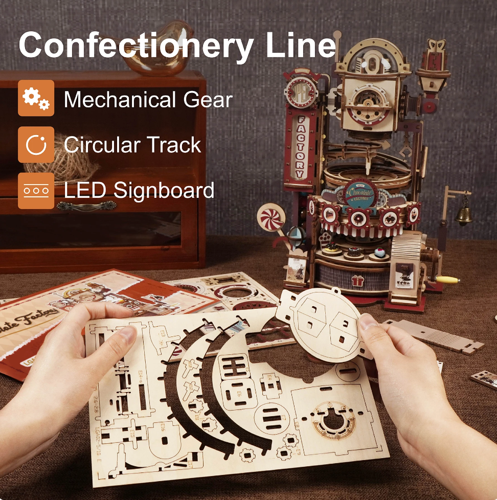 Robotime ROKR 420pcs DIY Chocolate Factory 3D Wooden Puzzle Assembly Marble Run Toy Gift for Children Teens Adult LGA02