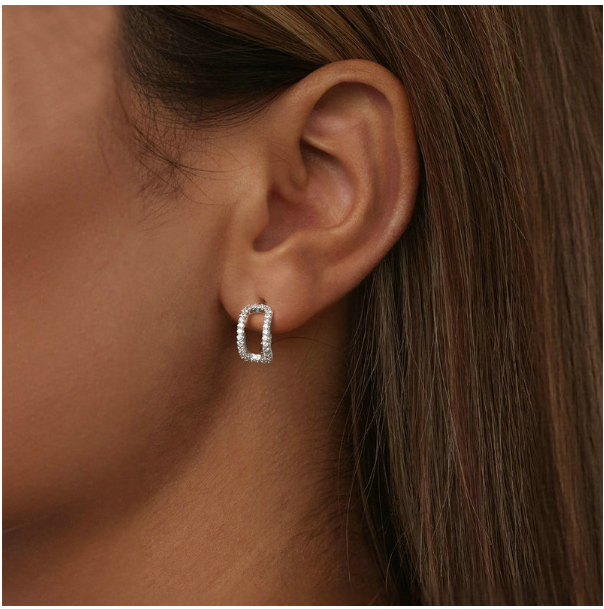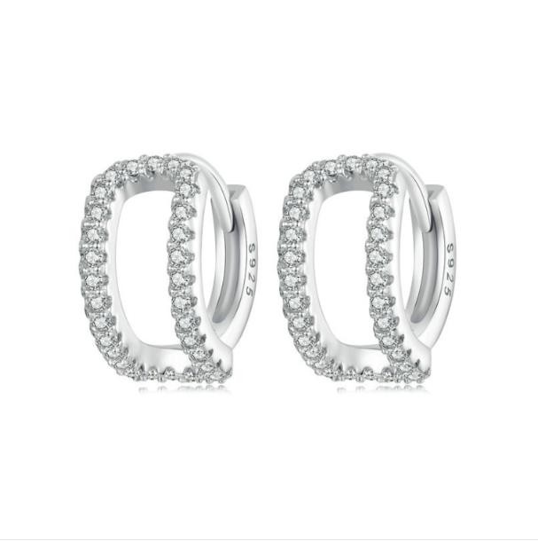 S925 Sterling Silver Plated White Gold Fine Flash Double Layer Earrings