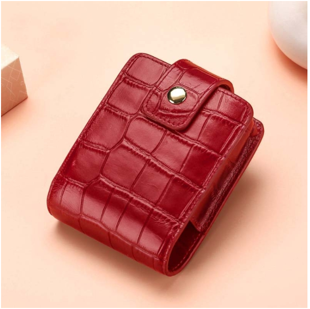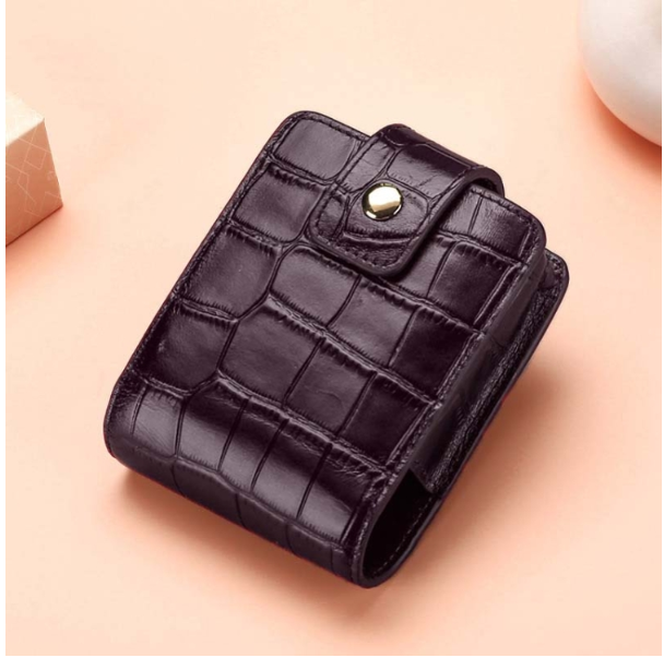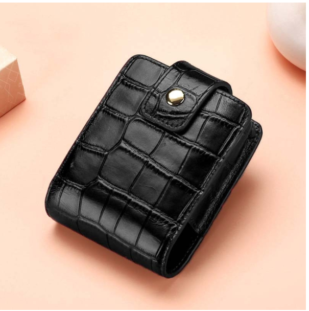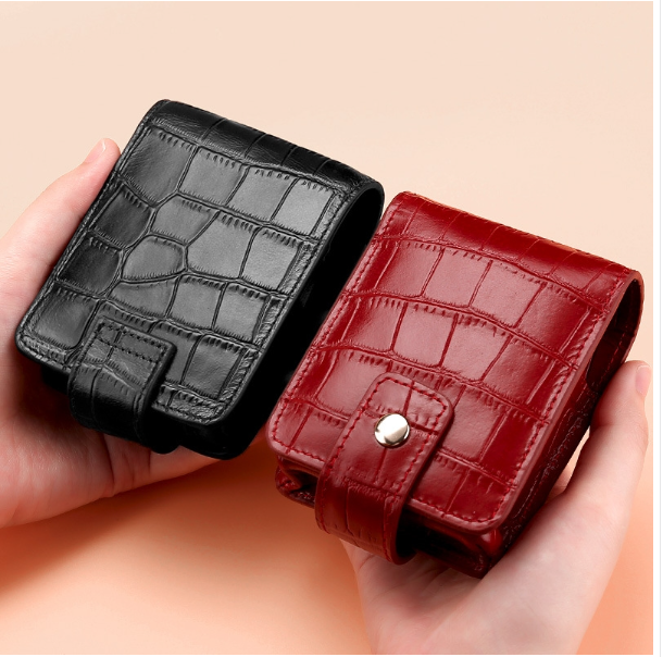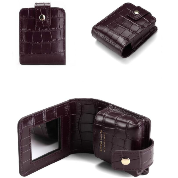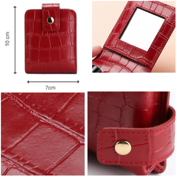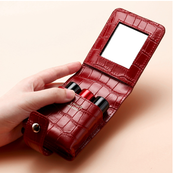 Simple Cowhide Crocodile Pattern Lipstick Bag Storage Portable Makeup Bag With Mirror