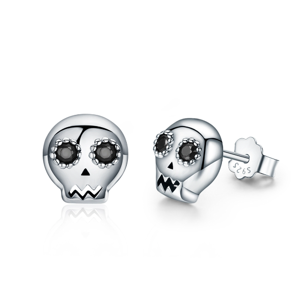 Skull Shape S925 Sterling Silver Stud Earrings Zircon Earrings