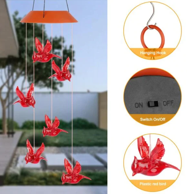 Solar Cardinal Wind Chime Light