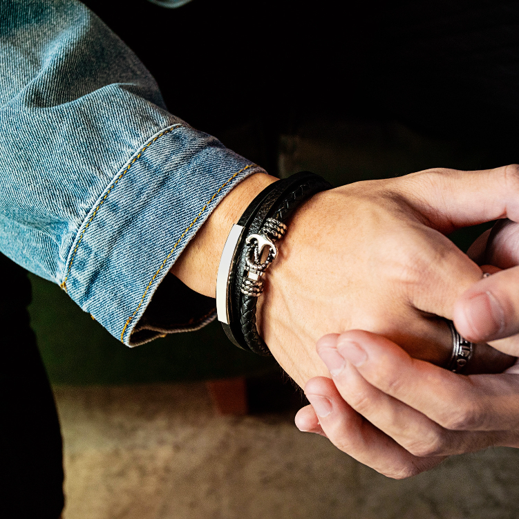 Stainless Steel Ship Anchor Men's Leather Bracelet with Multi-Layer Woven Vintage Bracelet