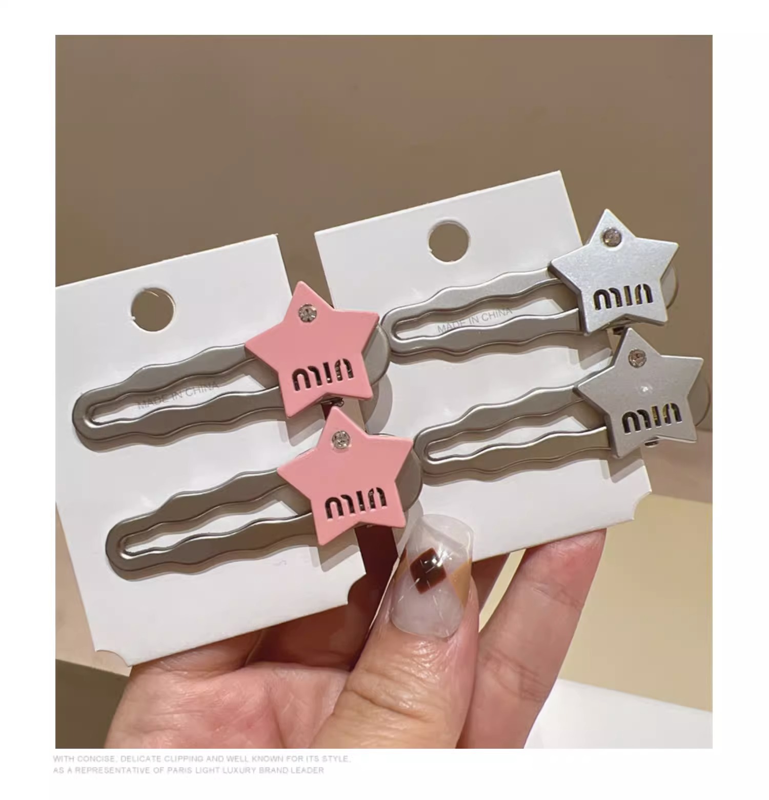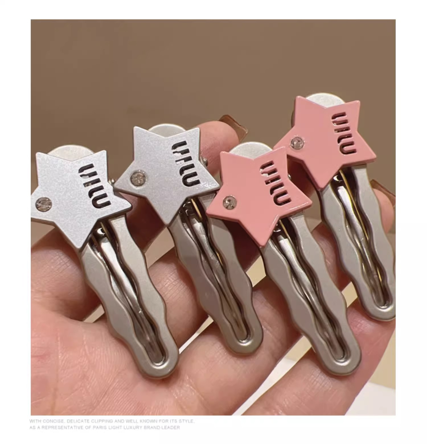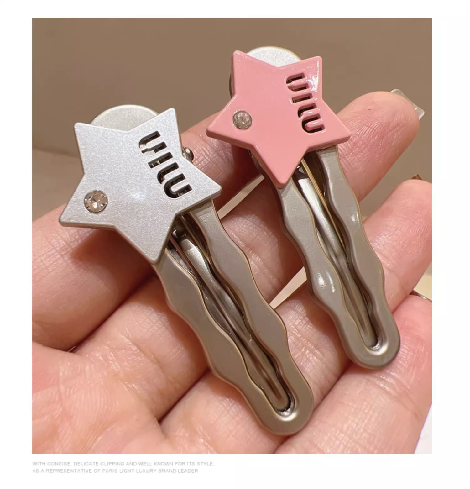 Sweet Cool Metal Pink Star Duckbill Clip Bangs Clip Matte Silver Premium Feeling Side Clip Hair Clips Hair Cards Hair Accessories FemaleAs low as $10.99