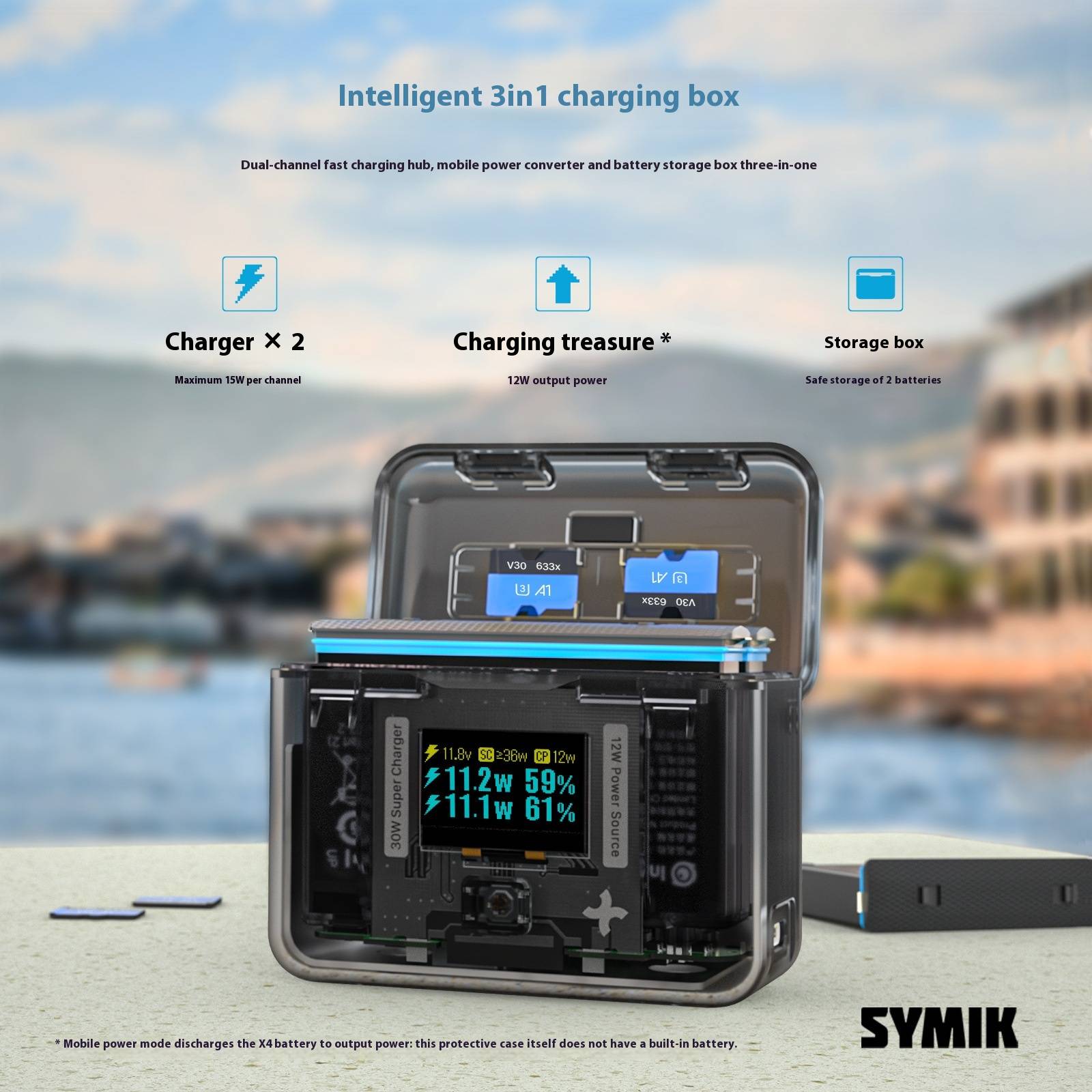 SYMIK Insta360 x4 Battery Fast Charger Bidirectional Smart Charging Butler Storage Box Accessories
