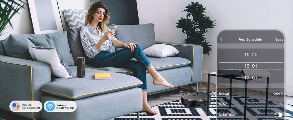 Easily create cleaning schedules, switch modes, and control directions using the Tuya Smart App. Compatible with Google Assistant, it allows voice commands for starting and stopping cleaning. A remote control is also included for added convenience.