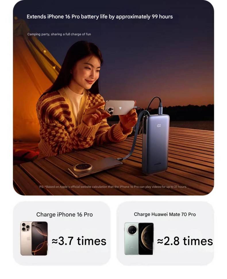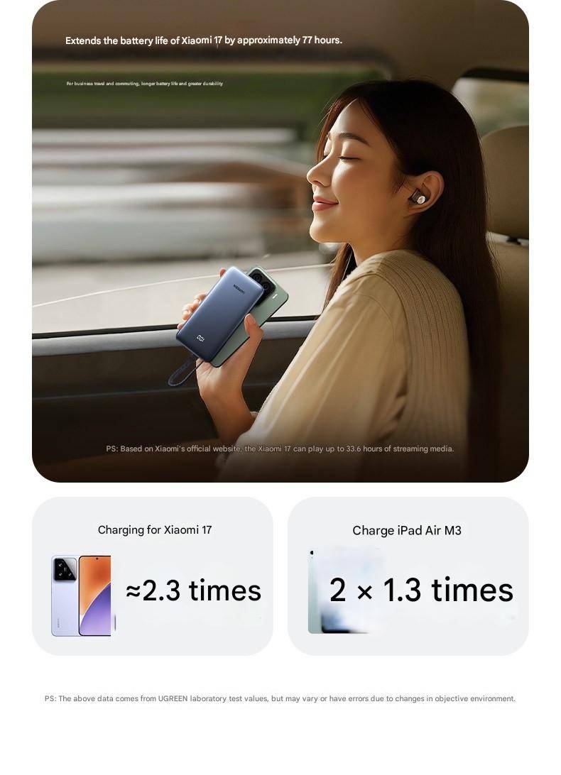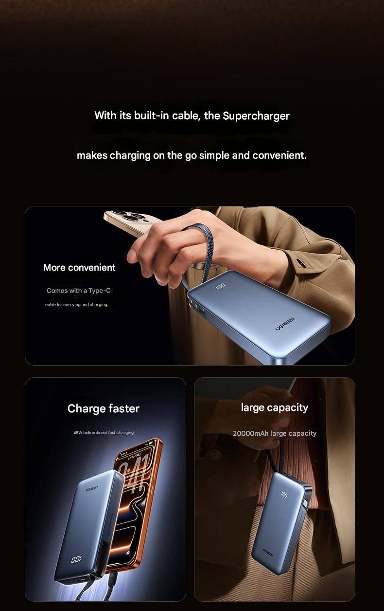 UGREEN 20000mAh Power Bank With Built in Cables