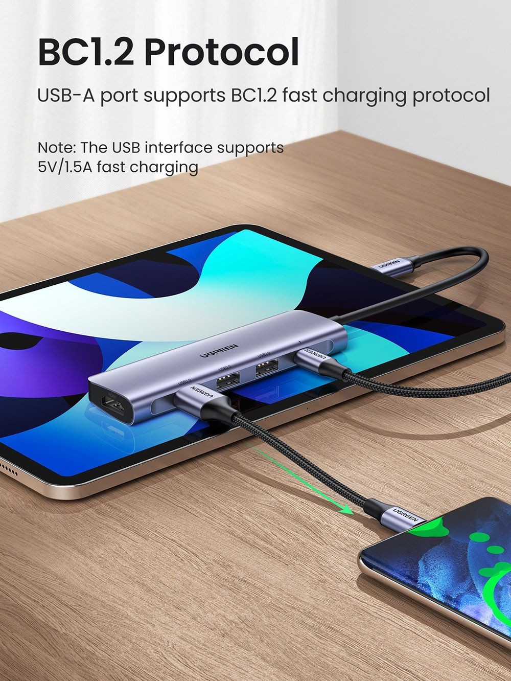 Ugreen USB C Hub with 4K HDMI, 5-In-1 Type C OTG Hub Multi-port Adapter, Thunderbolt 3 Dock with 3 USB 3.0 Ports
