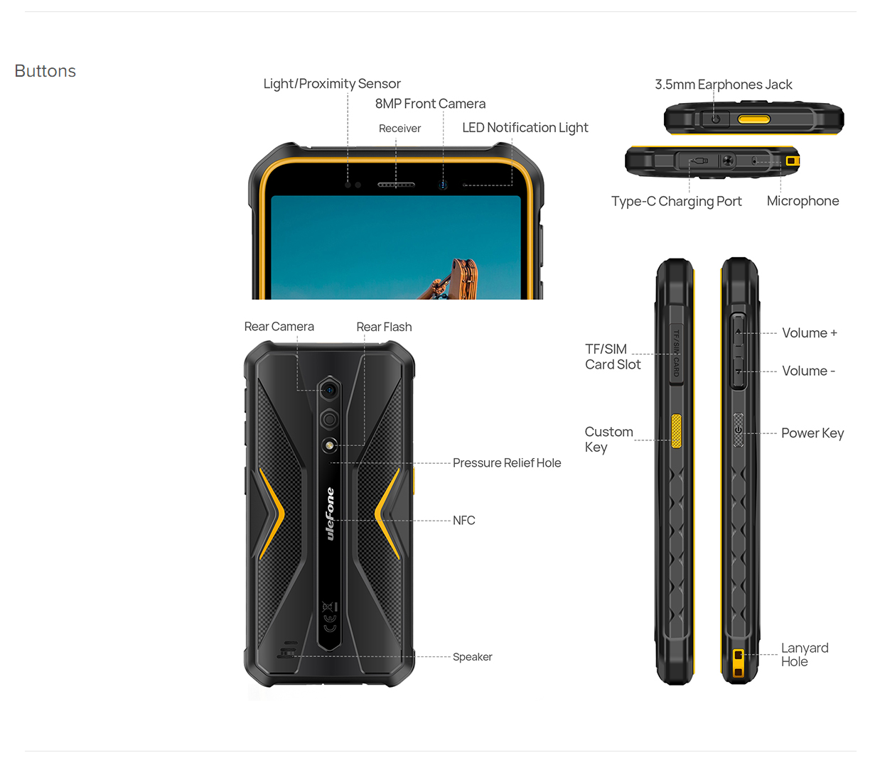 Ulefone Armor X12 Rugged Phone,Android 13 Smartphone,6GB(3GB+3GB)RAM, 32GB ROM,4860mAh,13MP 5.45"4G NFC Phone,Global Version