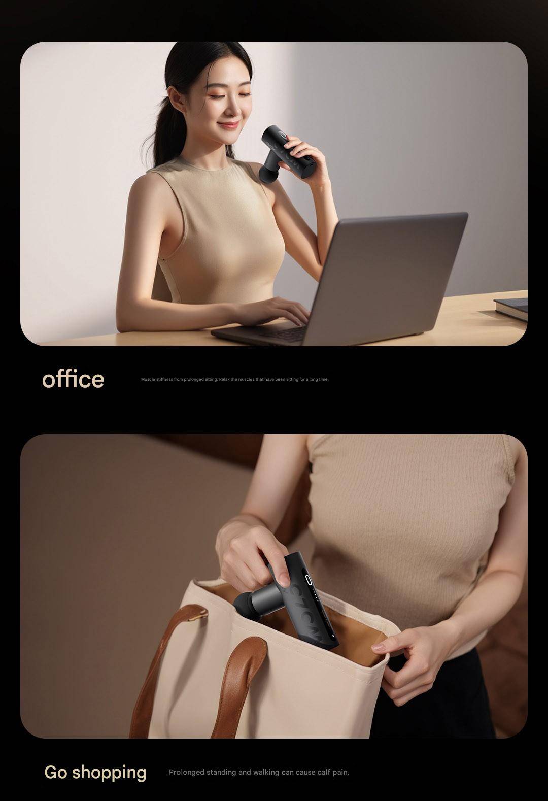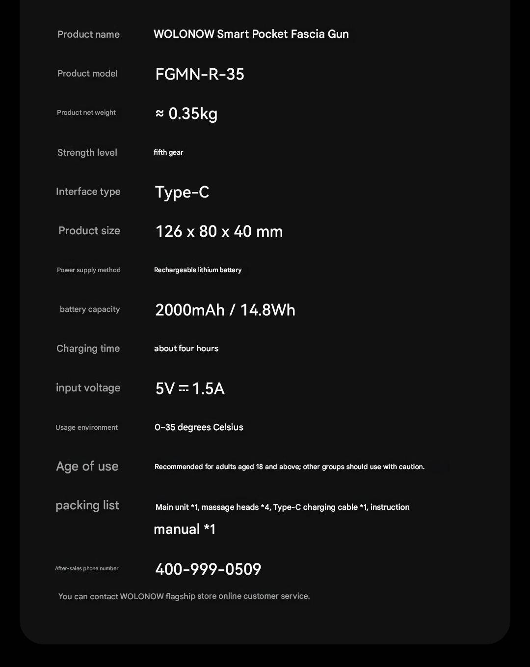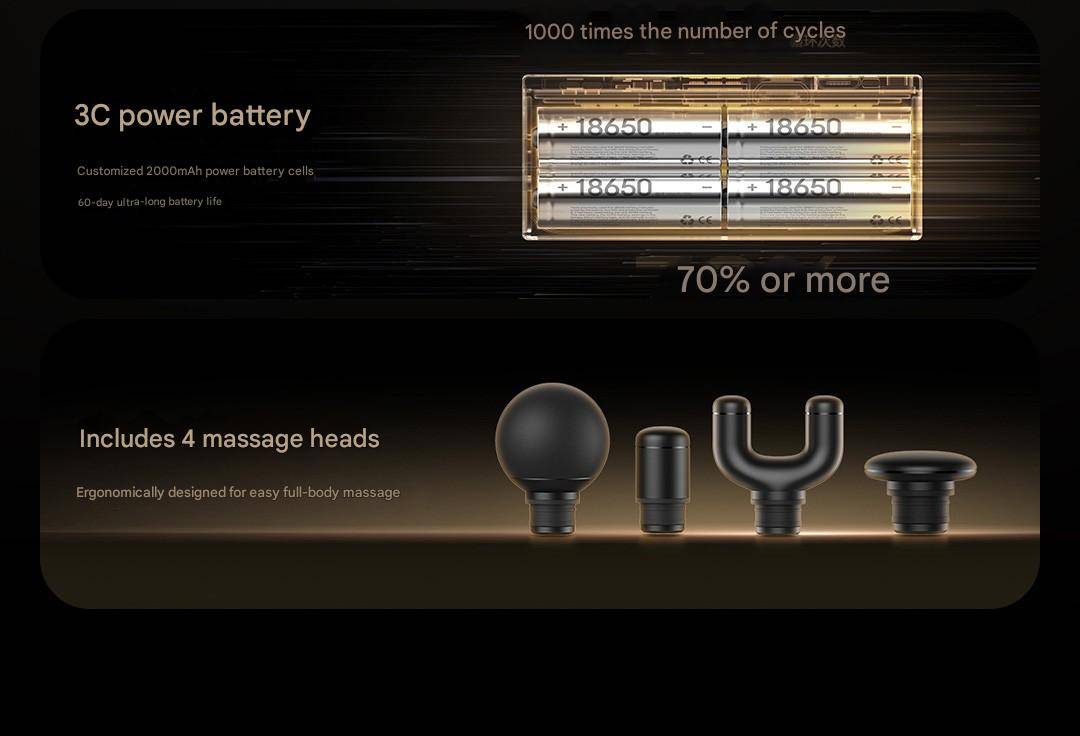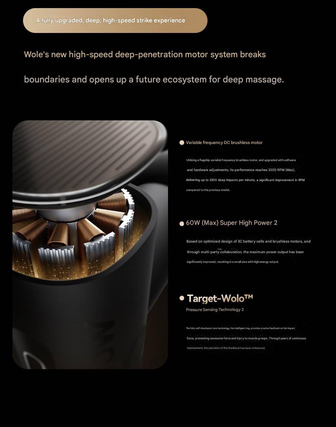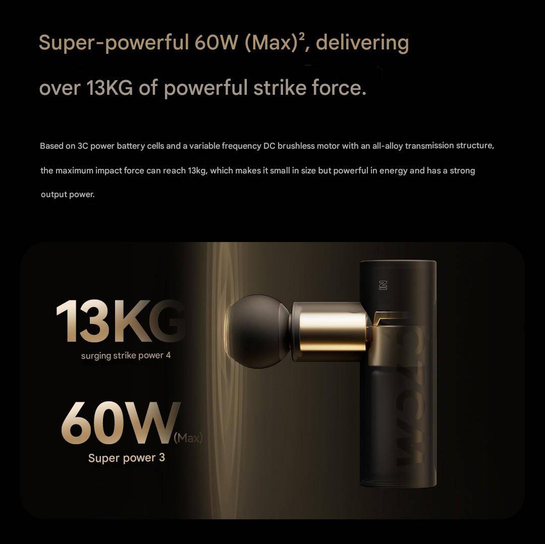 Wolonow Mini Portable Massage Gun 5-Speed AI Intelligent Adjustment Includes 4 Custom Massage Heads, Silent Operation High-Power Brushless Motor