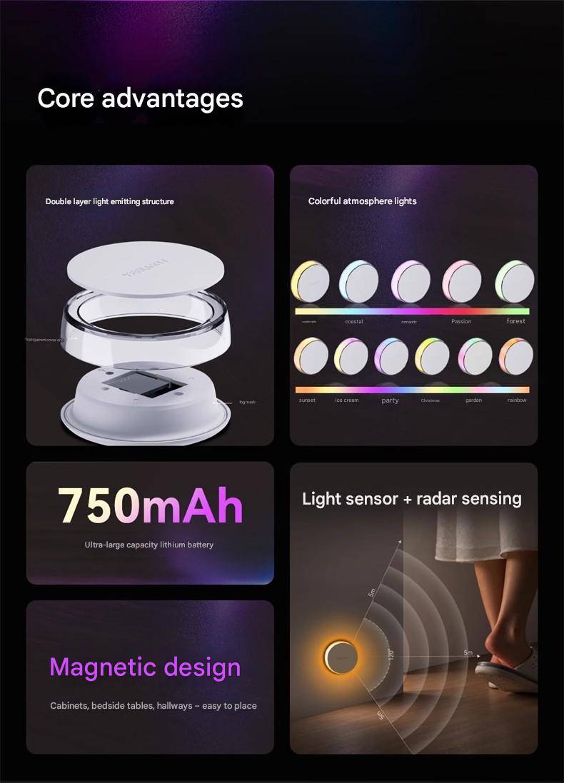 Yeelight RGB Night Light Magnetic, Light-Sensing, and Motion-Activated Ambient Lamp for Bedrooms, Hallways, and Bedside Use